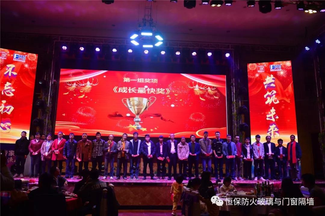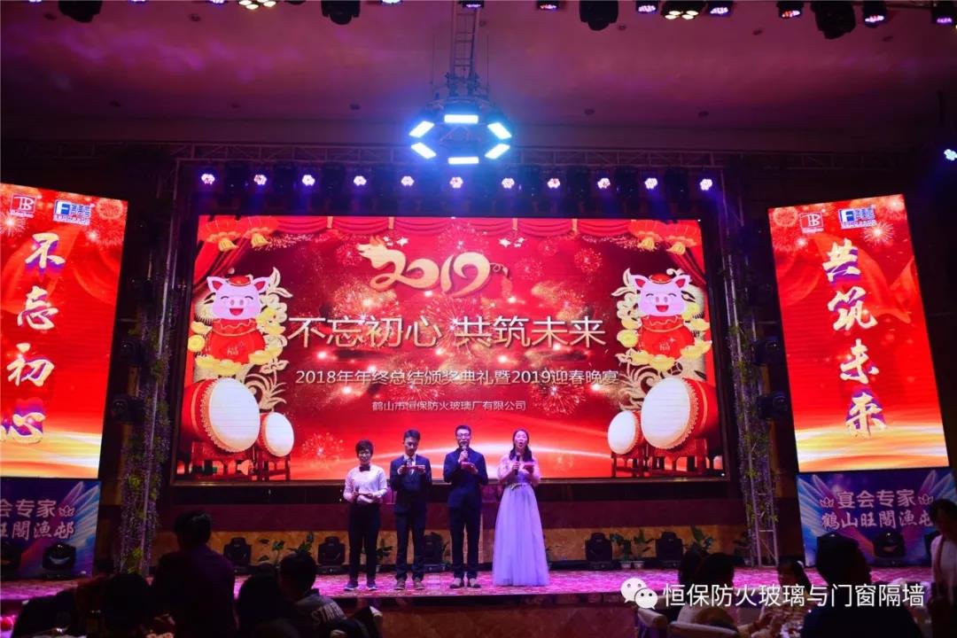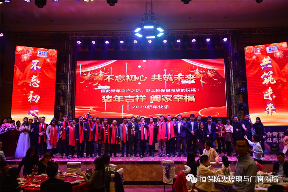 19:30分,恒保年會(huì)在鼓舞飛揚(yáng)中拉開了帷幕,首先是恒保總經(jīng)理陳沃林先生做年終致辭,陳總回顧了2018年所取得的成績與不足,并提出了2019年恒保要全力以赴,不忘初心,繼續(xù)奮斗,再創(chuàng)佳績的戰(zhàn)略方針。2018年是恒??缭桨l(fā)展的一年。全體恒保家人,團(tuán)結(jié)一心,艱苦奮斗,全力實(shí)現(xiàn)了公司既定的年度目標(biāo),同比各項(xiàng)重要指標(biāo)增長逾80%。2018年我們大力引進(jìn)新設(shè)備,開發(fā)新產(chǎn)品10多項(xiàng),產(chǎn)品通過國家檢測20多項(xiàng) ,至此,恒保出品已擁有37個(gè)3C認(rèn)證,158份檢驗(yàn)報(bào)告,成為行業(yè)內(nèi)公認(rèn)通過國家檢驗(yàn)、認(rèn)證最多的防火玻璃門窗企業(yè);2018年在行業(yè)各類權(quán)威獎(jiǎng)項(xiàng)評比中,榮獲“全國鋁門窗幕墻展 年度星品獎(jiǎng)”、榮獲“新玻網(wǎng) 門窗玻璃十強(qiáng)企業(yè)”、陳沃林總經(jīng)理榮獲鶴山市工商聯(lián)系統(tǒng)“工匠之星”稱號、陳沃林總經(jīng)理榮獲第五屆中國玻璃行業(yè)“玻璃工匠”稱號、榮獲第三屆建筑門窗金軒獎(jiǎng)“最具創(chuàng)新力配套產(chǎn)品”、榮獲第三屆建筑門窗金軒獎(jiǎng)“最具發(fā)展?jié)摿ζ髽I(yè)”、榮獲中國門窗幕墻行業(yè)“科技進(jìn)步推動(dòng)獎(jiǎng)”等十多項(xiàng)獎(jiǎng)項(xiàng)。2019年我們將持續(xù)優(yōu)化各部門管理,提高員工工作技能、提高生產(chǎn)管理水平、提高生產(chǎn)效率、提高綜合管理能力,減少物料損耗,減少出錯(cuò)率。加強(qiáng)精密型材、新型防火門窗的開發(fā),滿足不同客戶的需求。2019年恒保上下一心、同心協(xié)力、不忘初心,共筑未來,為實(shí)現(xiàn)中國平安夢、世界平安夢繼續(xù)奮斗!