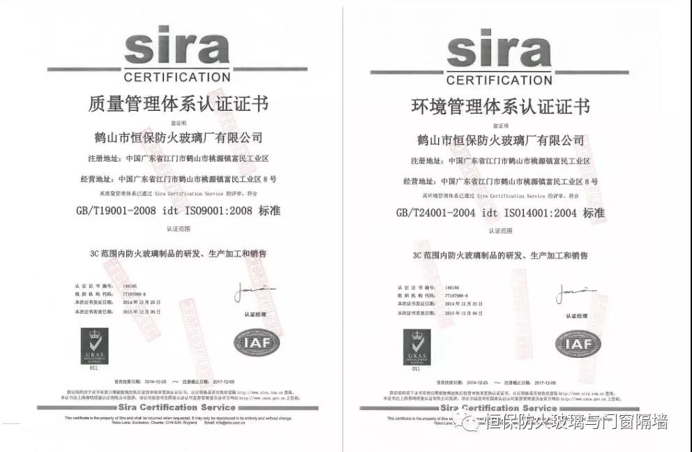 鶴山市恒保防火玻璃廠有限公司,自2014年第一次獲得ISO9001-2008質(zhì)量管理體系、ISO14001-2008環(huán)境管理體系認(rèn)證。并與原企業(yè)管理體系相結(jié)合,與CCC強(qiáng)制性認(rèn)證產(chǎn)品企業(yè)管理體系相融合,建立了更完善的科研、開發(fā)、生產(chǎn)、銷售和售后服務(wù)體系,使恒保公司穩(wěn)健快速增長。