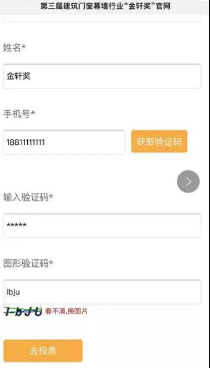 進(jìn)入投票頁面,彈出實(shí)名制個(gè)人信息填寫表格——請(qǐng)?zhí)顚懲暾麄€(gè)人信息,點(diǎn)擊獲取驗(yàn)證碼并輸入后提交。