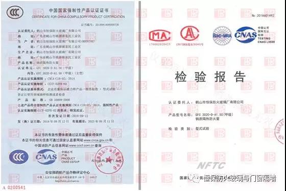鶴山市恒保防火玻璃廠有限公司經(jīng)過多年努力,終于解決這一行業(yè)難題:3000mmX2000mm超大尺寸版面,GFC 3020-D-A1.50(甲級)鋼質(zhì)隔熱防火窗于2018年6月29日成功通過國家防火建筑材質(zhì)量監(jiān)督檢驗中心型式試驗,取得檢驗報告,并于2018年09月11日獲得國家強制性CCC認證證書(證書號2018081806008738)。整窗都能滿足防火完整性和防火隔熱性1.5小時的要求,既符合建筑設(shè)計防火規(guī)范的要求,又具有窗的通透性,美觀實用。完美解決了地鐵高鐵消防控制室超大甲級防火觀察窗合法化的問題!